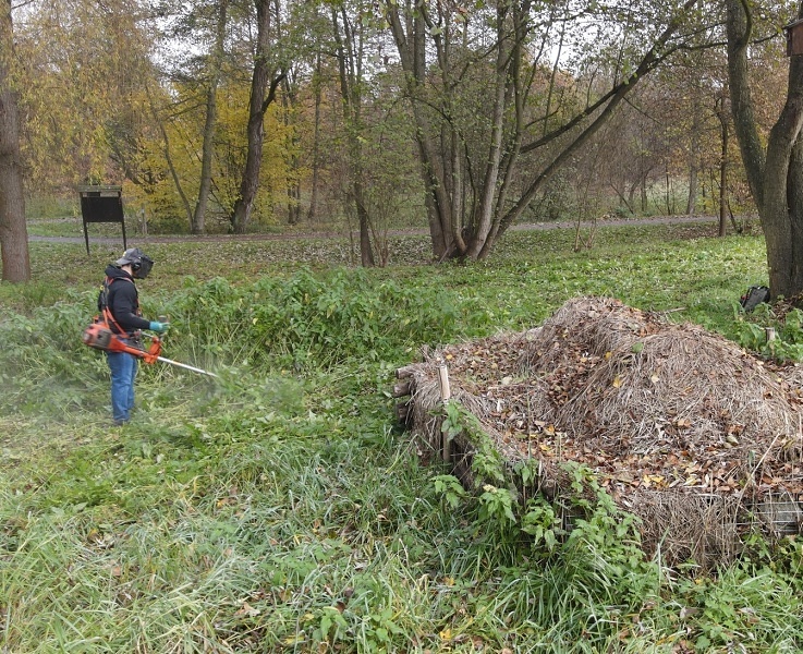 A jak pan Rudolf Zikmund řekl, tak se také stalo. V úterý 4. 11. 2025 se hlásí urostlý, silný muž s batohem na záchranné stanici. Následuje rychlé školení BOZP, křoviňák, hrábě, vidle, kanystr s benzínem, postroj, štít a už ho vezu k našim tůním ke sv. Jiří v Plzni Doubravce.