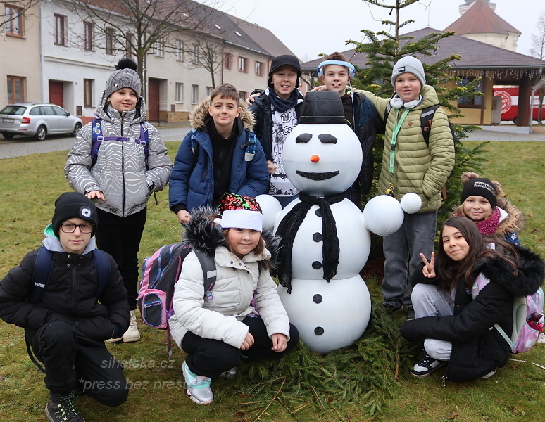 Staré koule, které zakrývaly výbojky, doslova vybízely k výrobě sněhuláka. Oči nahradily rozbité brýle, nos je ze značkovacího kolíku pro sportovní trasy, pusa a knoflíky z kousků filce a klobouk nahradil květináč. Originální sněhulák z veřejného osvětlení také svítí a je oblíbeným místem k fotografování.