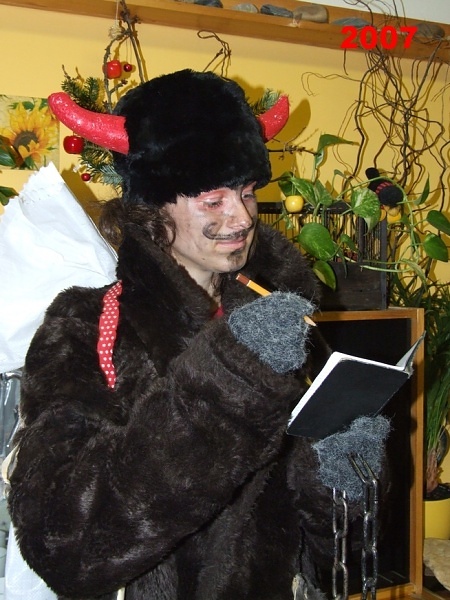 Doba se mění, ale reakce dětí jsou stále stejné. Čistý nefalšovaný strach, zpytování svědomí, třesoucí se bradička, nakrčené čelíčko, slzy a pláč, pevná opora táty i mámy, ale zároveň i úleva, rozzářené dětské oči a hlavně další informace a zkušenost. Podle mě bychom neměli děti o tuto zkušenost ochudit, i když kolikrát si musí převléknout punčocháče a emoce jsou opravdu silné. Nás strašili celoročně polepšovnou a to bylo podle mě mnohem horší než 5. 12. Mikuláš, čert a anděl. Když jsme se líčili na naší nové ZSŽ, tak z knihy hříchů vypadl lísteček s hříchy jakéhosi Robíka. Nevím, kdo je autorem toho textu, ale pravděpodobně Robík dnes už bude možná sám rodičem a jen by mě zajímalo, jestli i k jeho dětem přišel včera Mikuláš, čert a anděl?Nepřekonatelný čert Bohuslav Ježdík mladší. Pamatuji si, jak jsme přijeli tenkrát k Ivanu Jáchimovi z Dominik centra a mezi dveřmi nám říkal: "Ona dcera už asi nevěří, už je velká!" Bohouš jen utrousil: "Nevěří?! Ale bude," a věřte, že věřila a možná věří ještě dnes .Nebo v Božkově v jednom z rodinných domů se mezi hříchy malého kluka objevilo na papírku "Sahá si na pindíka". Samozřejmě jsme odmítli ho za to kárat a odnést do pekla ."Šťourá se v nose! Ale na druhou stranu zase pěkně tancuje a zpívá!" bylo napsáno na dalším lístečku u jedné holčičky. Byla to jedna z posledních rodin, kam jsme přijeli, a tak Mikulášova tázací věta: "Cože?! Šťourá se v nose a ještě u toho tancuje a zpívá?!" nás tenkrát rozesmála úplně všechny.